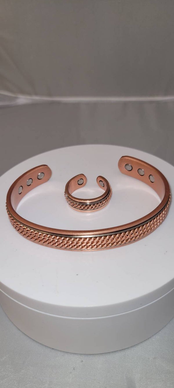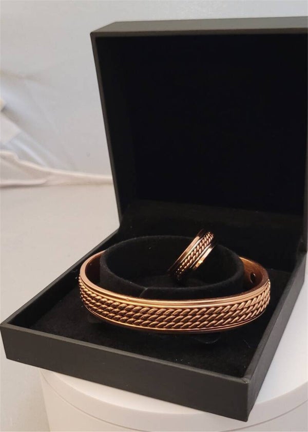 99.9% Copper, Magnetic Bangle and ring set in a beautiful Rope Braid pattern.