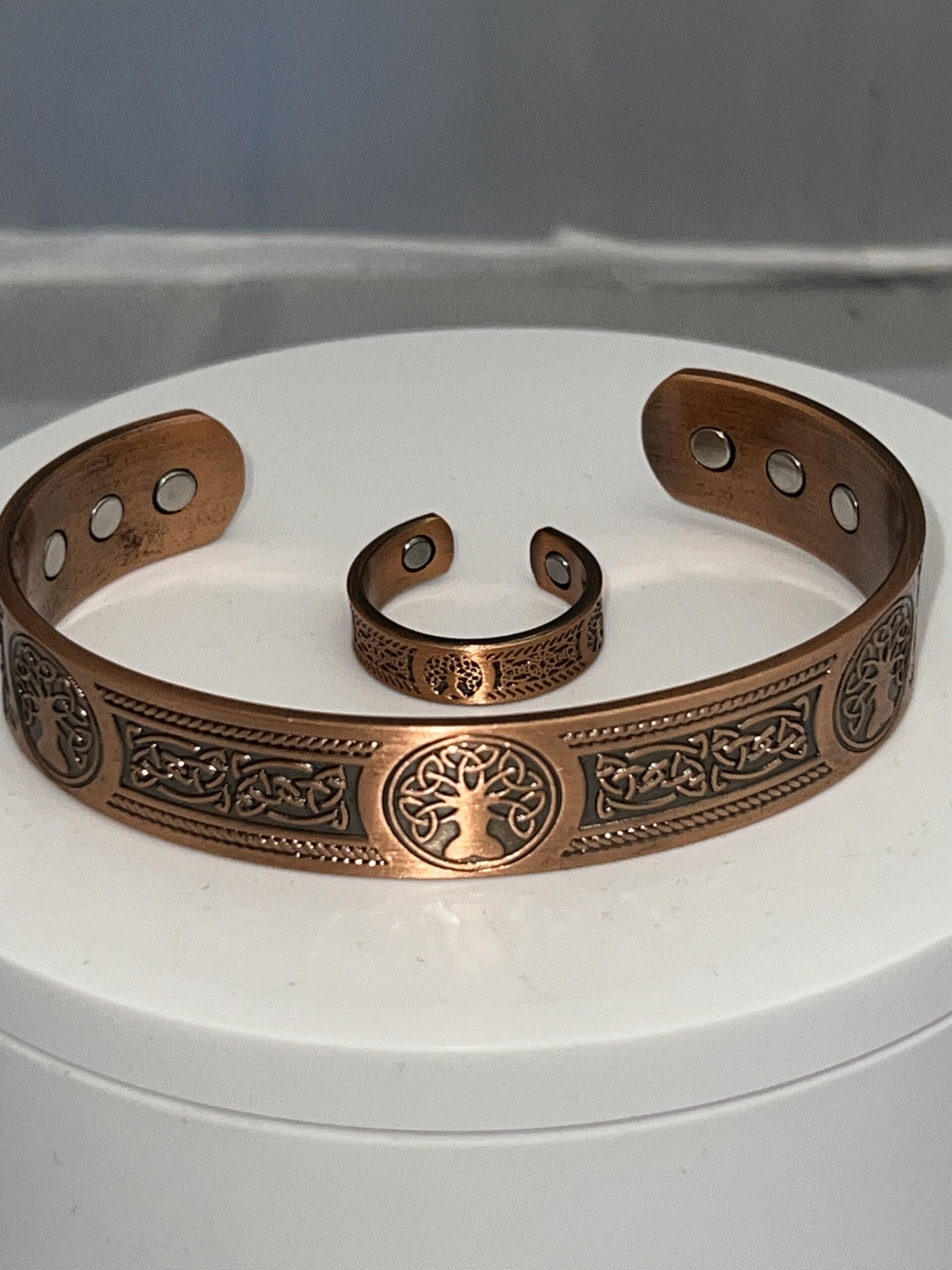 'Tree of Life' Copper Magnetic Therapy Bracelet & Ring Set