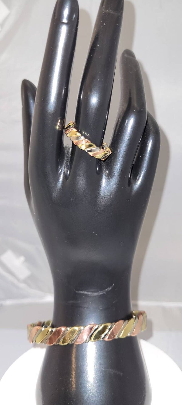 Stunning Yellow gold, Rose gold & Silver coloured Bangle & Ring Set. 9