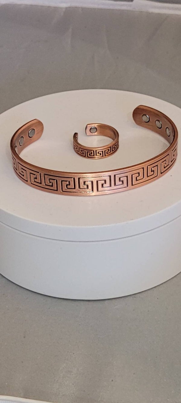Greek Key Pattern Wide Bracelet and Ring Set