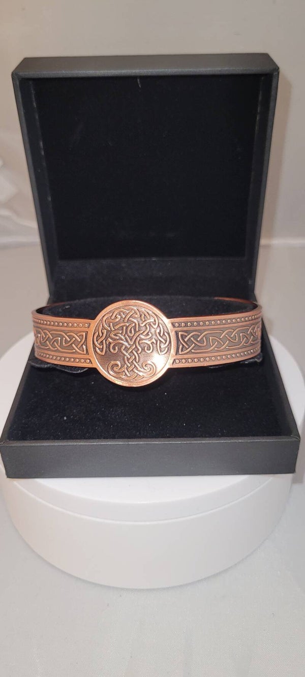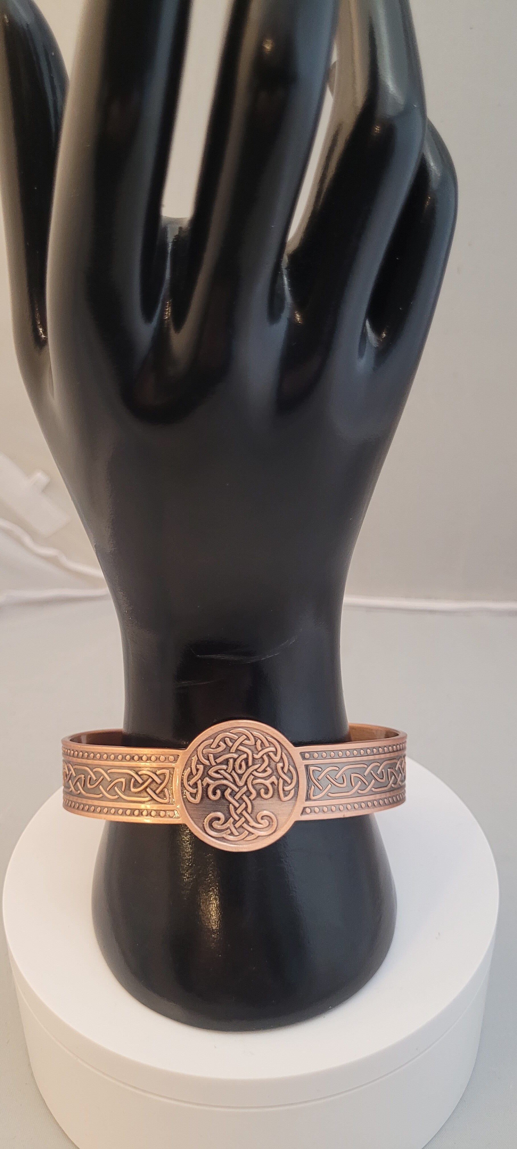 99.9% Copper in a Gaelic Druidic style carving with a Tree design central disc (approx. size of a 10p).