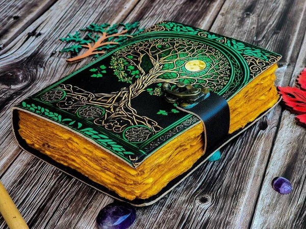 Handmade Leather bound "Tree of Life" Journal / Notebook / Grimoire